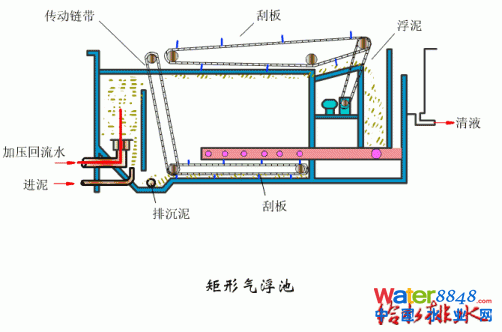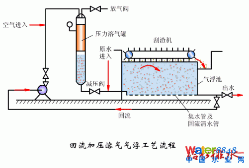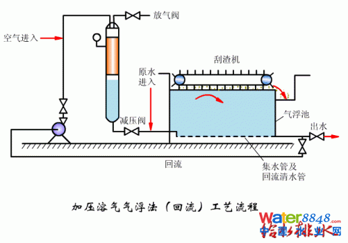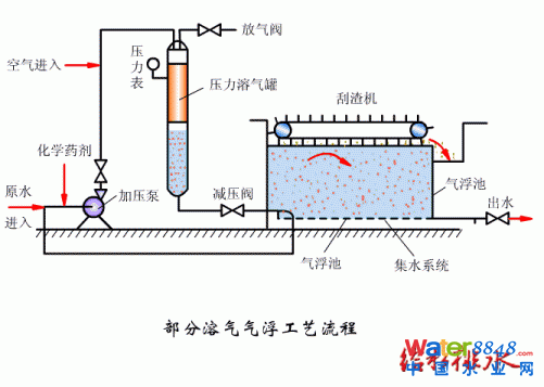(2)布?xì)鈿飧》ā_@種方法的工作原理是將溶解在水中的空氣剪碎,常用葉輪氣浮、水泵吸水管吸氣浮、擴(kuò)散板曝氣浮以及射流氣浮等設(shè)備,這種方法易于操作和管理,并且耗能減小,但是無(wú)法準(zhǔn)確控制氣泡的破碎程度,上浮的效果就可能會(huì)受到影響;