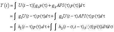 即使流域匯流采用線性響應(yīng)函數(shù)模型我們可以從理論上可以導(dǎo)出與普適性Volterra非線性響應(yīng)函數(shù)式同構(gòu)的具有物理機(jī)制的適用解,過(guò)程如下: