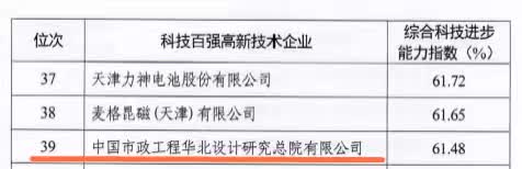 「喜報(bào)」中國市政華北總院被列入天津市科技百強(qiáng)高新技術(shù)企業(yè)