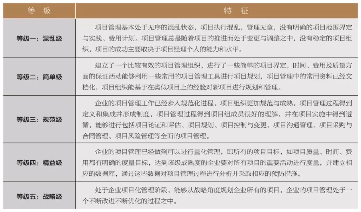 根據(jù)項(xiàng)目管理理論,企業(yè)的項(xiàng)目管理能力可以分為五個(gè)等級。