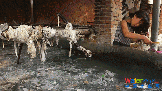 處理垃圾的工人用赤裸的雙手直接接觸各種毒害廢品,孩子們?cè)诶缴吓郎吓老拢遄永锏乃蹪岵豢,廢品簡(jiǎn)單加工后制成便宜的日用品進(jìn)入市場(chǎng)。
