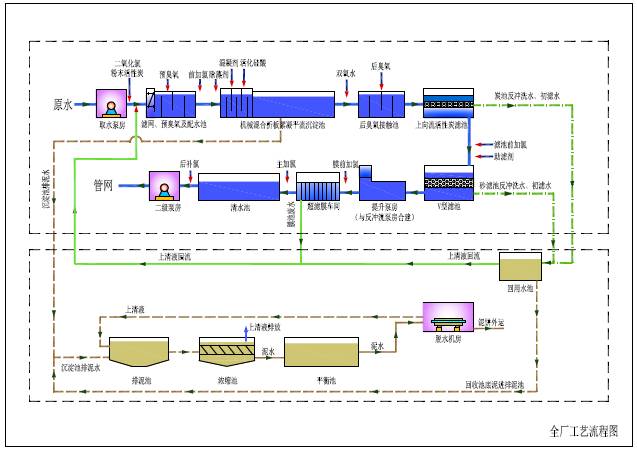 1.3建設(shè)規(guī)模:設(shè)計(jì)規(guī)模為日供水20萬噸;處理工藝采用“臭氧預(yù)處理+混合、反應(yīng)、平流沉淀+氣水反沖過濾+后臭氧接觸+活性炭砂濾池+超濾膜”工藝,污泥處理采用重力濃縮、機(jī)械脫水的工藝方案;主要建設(shè)內(nèi)容包括:新建凈水廠一座(20萬噸/日)、新建取水泵站一座(20萬噸/日)、新建原水管道約16公里、配水管網(wǎng)約18公里等。