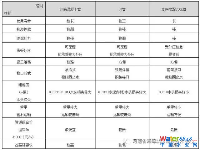 常用的污水管道管材主要有鋼筋混凝土管(PCP)、高密度聚乙烯管(HDPE)、鋼管等。結(jié)合綜合管廊工程實(shí)際,從使用壽命、抗?jié)B能力、防腐能力、施工難易度及管材價(jià)格等方面進(jìn)行比選。