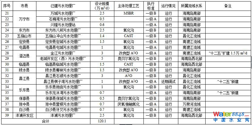 《海南省城鎮(zhèn)污水處理設施建設“十三五”規(guī)劃》總投資超過100億元