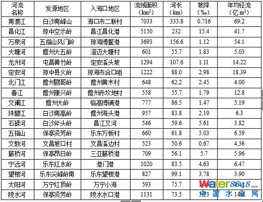 表1-1 海南省流域面積500km2以上河流基本情況