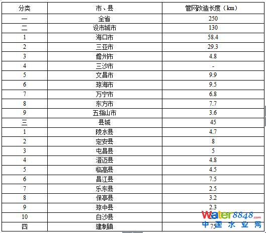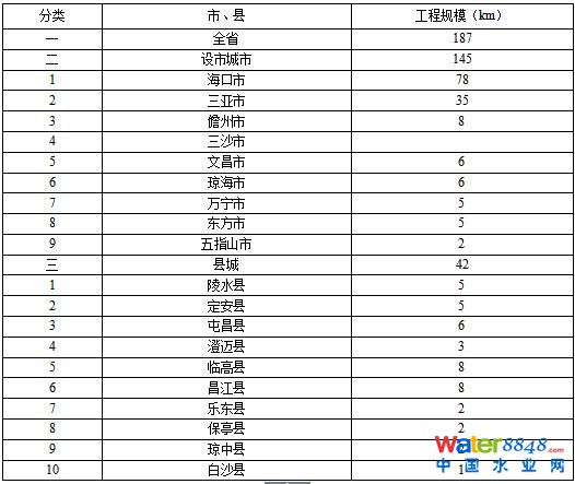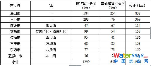 表1-3 海南省“十二五”污水管網(wǎng)建設情況一覽表