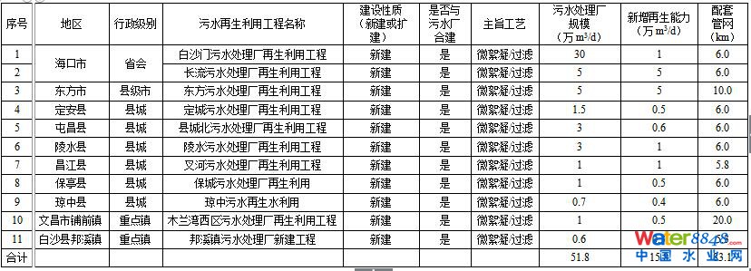 表1-4 海南省已建成污水再生利用設施一覽表
