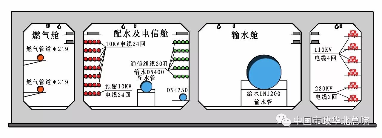 近日,重慶分公司順利中標重慶巴南區(qū)綜合管廊試點工程勘察設(shè)計項目。本次中標綜合管廊總長10.51公里,總投資約11.3億元。設(shè)計內(nèi)容包括綜合管廊主體工程、結(jié)構(gòu)工程、電氣工程、監(jiān)控與報警工程、通風(fēng)工程、消防工程、控制中心等。入廊管線包含給水(DN1200輸水干線和DN400配水管線)、中水、燃氣、通訊、電力(10KV、110KV和220KV)等。綜合管廊斷面采用3艙室和4艙形式,分別為高壓電艙、輸水艙、水信艙和燃氣艙,設(shè)計綜合管廊外部尺寸寬×高約為12.6m×3.9m。