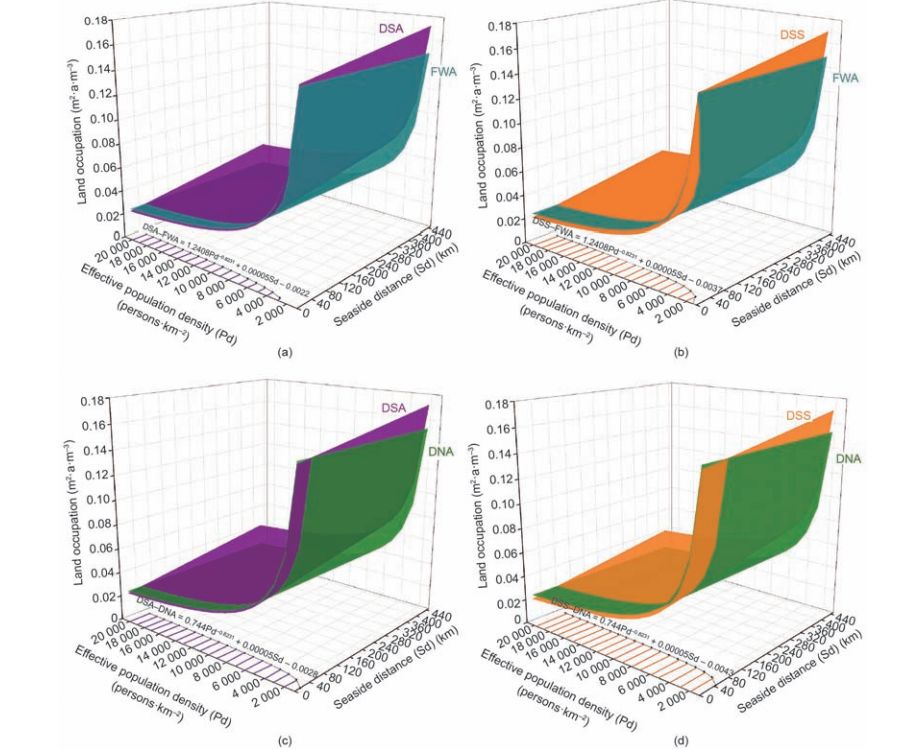 ▲ 基于土地使用的敏感性分析:  (a)  DSA vs FWA; (b) DSS vs FWA; (c) DSA vs DNA; (d)DSS vs DNA