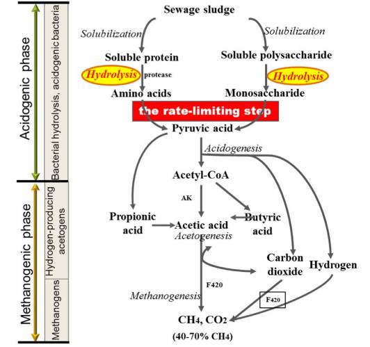 厭氧消化是一個多步反應(yīng)組成的工藝技術(shù),主要可分為水解、酸解(發(fā)酵)、產(chǎn)乙酸和產(chǎn)甲烷四大步。許多研究的結(jié)果都顯示水解是反應(yīng)速率限制的關(guān)鍵步驟所在,因為污泥中的復(fù)雜絮狀結(jié)構(gòu)(例如EPS胞外聚合物)和堅硬的細(xì)胞壁都導(dǎo)致反應(yīng)停留時間的延長、有機固體降解率的降低和甲烷的低產(chǎn)率。為了加快水解速率和厭氧消化的整體效率,各種預(yù)處理技術(shù)應(yīng)運而生。