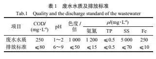 某顏料有限公司是目前中國氧化鐵行業(yè)生產(chǎn)量最大、銷售量最高、出口創(chuàng)匯最多的化工企業(yè),年產(chǎn)氧化鐵顏料92000噸,產(chǎn)品有氧化鐵紅、鐵黃、鐵黑、鐵橙、鐵棕、鐵綠,以及超細(xì)、耐高溫等深加工系列產(chǎn)品50多個。設(shè)計處理量為3000m3/d,所排放的廢水主要是生產(chǎn)工藝廢水和地面沖洗廢水,經(jīng)處理后直接排放,要求達(dá)到污水綜合排放標(biāo)準(zhǔn)(GB8978-1996)一級排放標(biāo)準(zhǔn),設(shè)計進(jìn)出水質(zhì)及排放標(biāo)準(zhǔn)見表1。