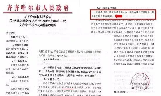 6月23日,第三批城市黑臭水體整治環(huán)境保護(hù)專項(xiàng)行動(dòng)第31督查組接到群眾舉報(bào)稱,齊齊哈爾市昂昂溪區(qū)有一個(gè)存在10余年的巨大臭水泡。督查組立即將該舉報(bào)信息交辦給當(dāng)?shù)卣藢?shí),要求地方政府在5日內(nèi)向督查組反饋意見(jiàn)。幾天后,齊齊哈爾政府核實(shí)辦理情況報(bào)告中表示,“經(jīng)調(diào)查核實(shí),該案件屬黑臭水體,但不在建成區(qū)范圍內(nèi),群眾舉報(bào)案件基本屬實(shí)。”