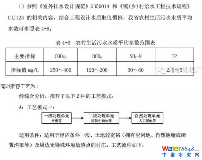 關于“厭氧+人工濕地”工藝,想必我不用多說大家也都懂,對COD去除有一定的作用,但是脫氮除磷效果微弱或者說是效率低下。浙江省發(fā)文《農村生活污水處理工程技術規(guī)范編制說明(征求意見稿)》給出了浙江省參考進水水質