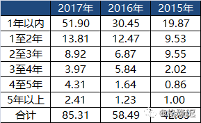 回款究竟有多慢呢?通過這個表可以看到:2015年“1年以內(nèi)”的應收賬款是19.87億元,如果當年沒還上,就會在2016年記為“1至2年”的應收賬款,也就是12.47億元。如果還是沒還上,就會在2017年記為“2至3年”的應收賬款,也就是8.92億元。