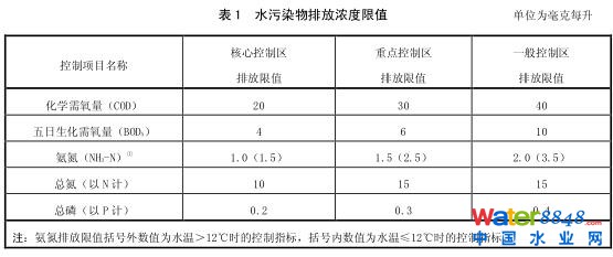 4.2.1自本標準實施之日起,核心控制區(qū)、重點控制區(qū)和一般控制區(qū)內(nèi),新(改、擴)建排污單位的水污染物排放限值按表1規(guī)定執(zhí)行。當新(改、擴)建排污單位下游配套建設(shè)人工濕地水質(zhì)凈化工程且同時滿足以下條件時,下游人工濕地水質(zhì)凈化工程出水口的水污染物排放限值執(zhí)行本標準表1規(guī)定: