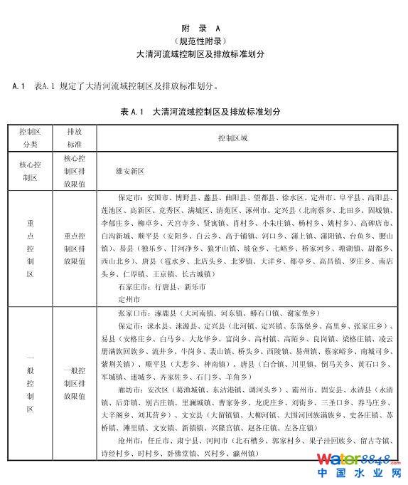 根據(jù)大清河流域水污染特點和環(huán)境保護要求,將大清河流域劃分為核心控制區(qū)、重點控制區(qū)和一般控制區(qū),詳見附錄A。