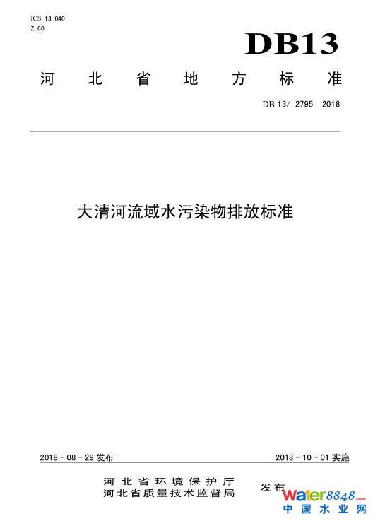 本標準規(guī)定了河北省大清河流域內(nèi)水污染物的排放控制、監(jiān)測、實施與監(jiān)督要求。