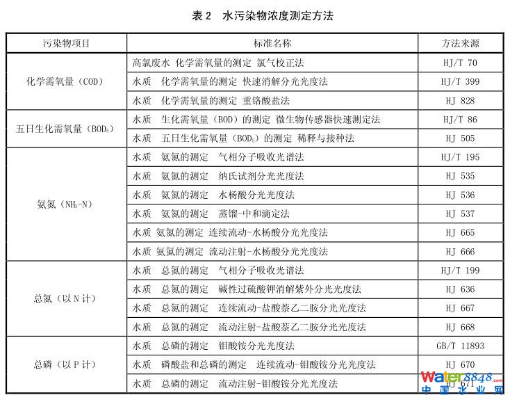 5.5本標準發(fā)布實施后,對排污單位主要水污染物排放濃度的測定選取表2所列的方法標準;國家有新標準頒布時,其方法適用范圍相同的,也適用于本排放標準對應(yīng)污染物的測定。