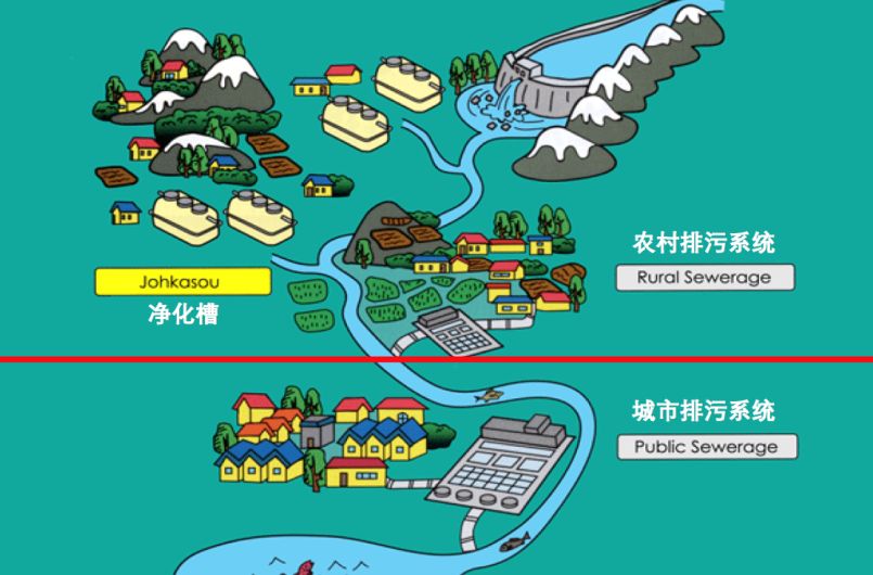 為了更高效地開展生活污水治理,日本堅持結(jié)合地區(qū)的特點進(jìn)行生活污水處理設(shè)施的建設(shè)。根據(jù)對象地區(qū)的人口密度,來建設(shè)不同類型的生活污水處理設(shè)施。在人口密度高的城市地區(qū)或在居住比較密集的農(nóng)村地區(qū),主要建設(shè)下水道和農(nóng)業(yè)村落排水設(shè)施這樣的集中式處理設(shè)施,而在人口密度低的城郊、農(nóng)村、山區(qū),則以安裝以凈化槽為代表的分散式處理設(shè)施。