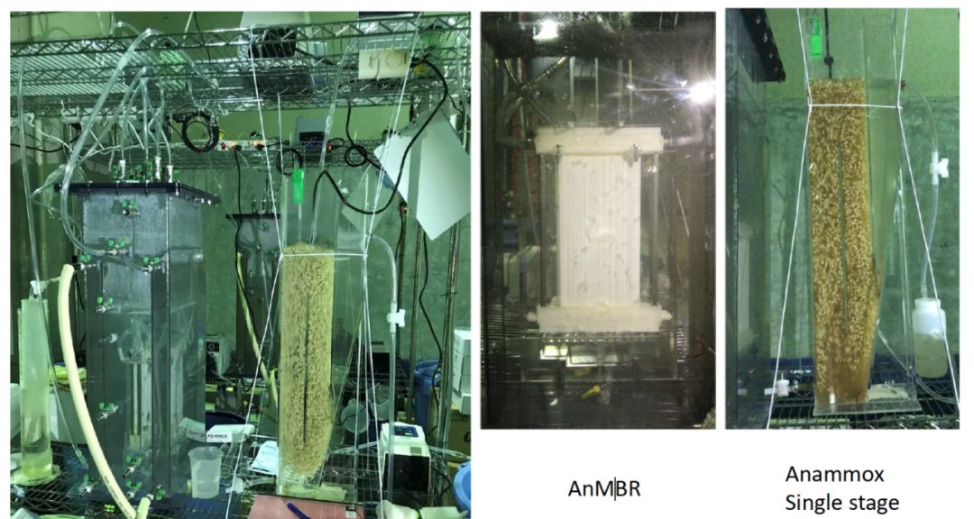 研究團(tuán)隊在2011年開始對anammox展開了研究。最初先研究反應(yīng)器的啟動和顆;,隨后兩年開始研究抑制機(jī)制和恢復(fù)方法,然后就開始了厭氧氨氧化附著膜膨脹床反應(yīng)器(Anammox attached film expended bed -AAFEB),同時開發(fā)對單階工藝使用的人工載體和微顆粒進(jìn)行優(yōu)化。