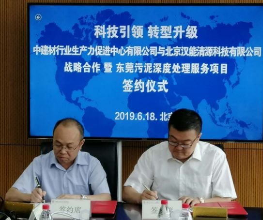 中建材行業(yè)生產(chǎn)力促進(jìn)中心有限公司與北京漢能清源科技有限公司舉辦了科技引領(lǐng)轉(zhuǎn)型升級戰(zhàn)略合作協(xié)議簽約儀式,暨東莞污泥深度處理服務(wù)項目簽約儀式。中建材行業(yè)生產(chǎn)力促進(jìn)中心有限公司副主任、北京凱盛建材工程有限公