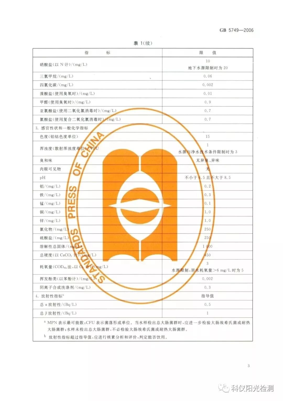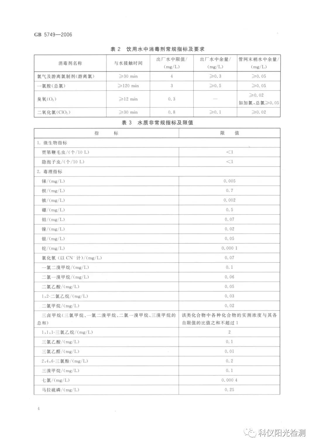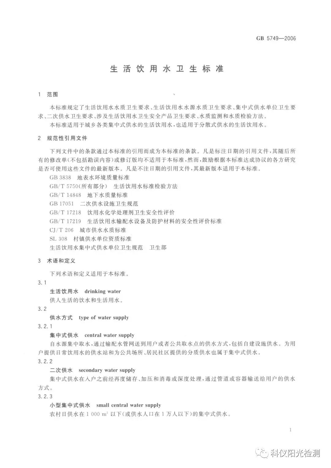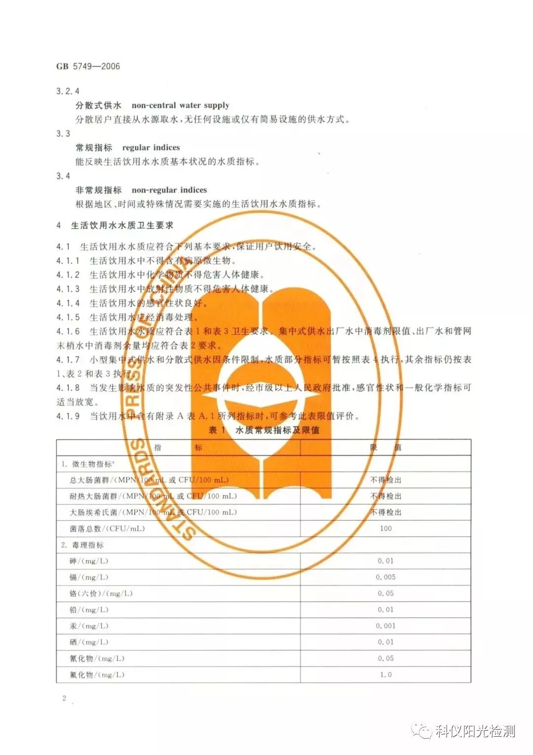 基本項(xiàng)目(表1、表2,42項(xiàng)):反映生活飲用水水質(zhì)基本狀況的水質(zhì)指標(biāo),各地在水質(zhì)檢測(cè)、監(jiān)測(cè)中應(yīng)實(shí)施的指標(biāo)。