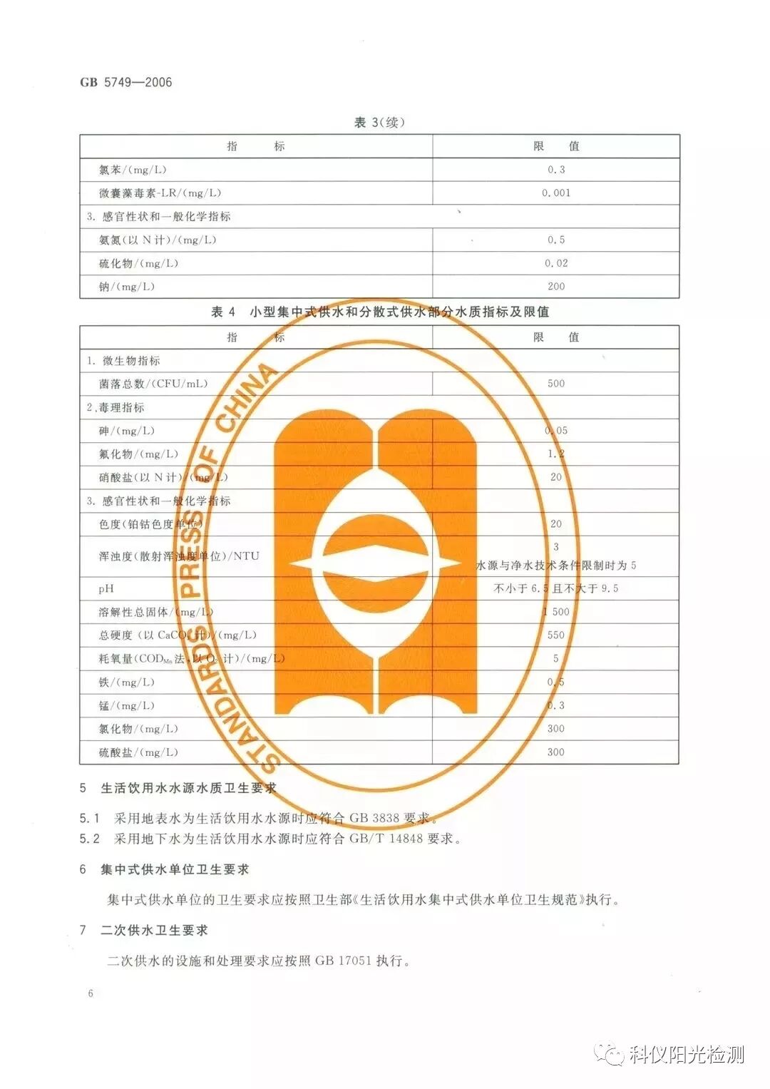 取消了小型集中式供水和分散式供水部分水質(zhì)指標(biāo)及限值的暫行規(guī)定,不單獨(dú)列表對(duì)農(nóng)村小型供水放寬要求,在保留的5個(gè)項(xiàng)目菌落總數(shù)、硝酸鹽、氯化物、硫酸鹽、總硬度用說明放寬。