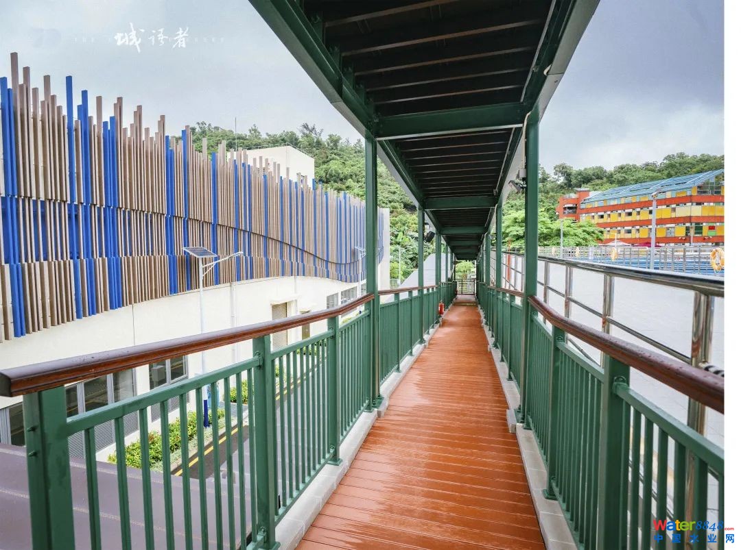 吳未紅說(shuō),在設(shè)計(jì)之初,團(tuán)隊(duì)就知道,這個(gè)項(xiàng)目可以成為澳門(mén)當(dāng)?shù)氐氖痉督逃,需要考慮人行參觀通道,所以我們?cè)谒幚順?gòu)筑物的頂部都設(shè)置了專用通道,從綜合樓展示廳開(kāi)始,經(jīng)水處理構(gòu)筑物,最后接至泵站南側(cè)的大巴?奎c(diǎn),在不增加占地的情況下,實(shí)現(xiàn)了參觀與廠區(qū)生產(chǎn)的完全分流。