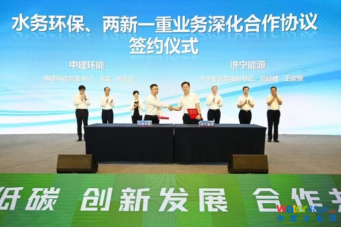 論壇期間,還舉行了濟寧能源高鹽水資源化利用項目揭牌儀式,中建環(huán)能與濟寧能源簽署水務環(huán)保、兩新一重業(yè)務深化合作協議,國內水環(huán)境與水循環(huán)領域專家學者作主旨演講。