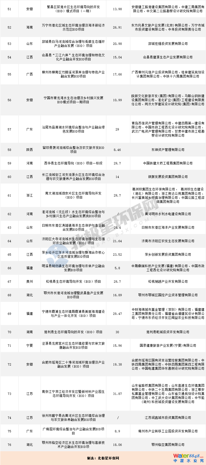 從項(xiàng)目金額看,76個(gè)中標(biāo)項(xiàng)目投資額集中在10-30億元,占比約60%。其中投資額最高的為河北省潮河流域(灤平段)生態(tài)治理與鄉(xiāng)村振興產(chǎn)業(yè)融合發(fā)展(EOD)及工業(yè)固廢綜合利用項(xiàng)目。該項(xiàng)目總投資1855031.7萬(wàn)元,包括項(xiàng)目A、B兩部分內(nèi)容,其中項(xiàng)目A投資約1132173.45萬(wàn)元;項(xiàng)目B投資約為722858.30萬(wàn)元。
