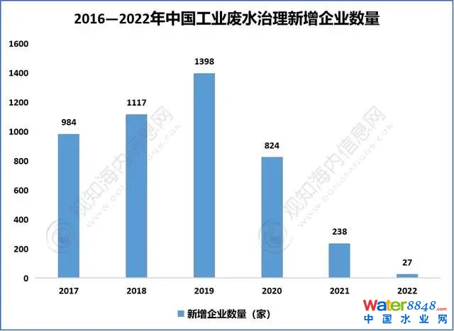 2016-2022年中國(guó)工業(yè)廢水治理新增企業(yè)數(shù)量