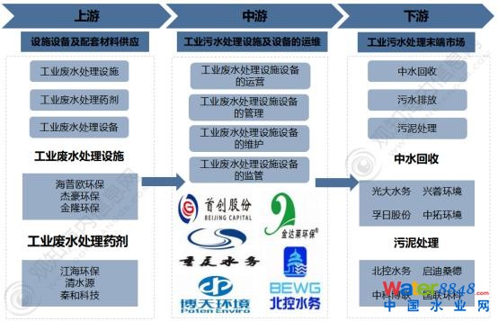 從工業(yè)廢水處理行業(yè)產(chǎn)業(yè)鏈上下游來(lái)看,工業(yè)廢水處理上游主要包括工業(yè)廢水處理設(shè)施、工業(yè)廢水處理設(shè)備以及工業(yè)廢水處理藥劑的提供。
