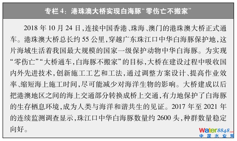 抓好入海河流污染防治。入海河流是陸源污染物輸入海洋的最重要途徑。中國積極提升城鎮(zhèn)污水處理質(zhì)效,建設改造雨污分流管網(wǎng),加強污水處理行業(yè)監(jiān)管,降低城鎮(zhèn)生產(chǎn)生活污水對入海河流水質(zhì)影響。2012年以來,沿海地區(qū)污水處理基礎設施建設顯著提速,地級以上城市污水處理廠基本完成一級A提標改造。開展農(nóng)村環(huán)境整治,“十四五”以來,沿海省份新增完成1.7萬個行政村環(huán)境綜合整治,編制完成170個畜牧大縣畜禽養(yǎng)殖污染防治規(guī)劃,農(nóng)村生活污水治理率超過45%,大幅降低農(nóng)業(yè)農(nóng)村污水排放。著力破解流域氮排放過量的近岸海域水質(zhì)污染和富營養(yǎng)化問題,建立沿海、流域、海域協(xié)同一體的綜合治理體系,探索將總氮控制范圍向入海河流上游拓展,推動入海河流實施“一河一策”總氮治理。2012—2017年中國入海河流國控斷面水質(zhì)整體保持穩(wěn)定并有所好轉(zhuǎn),2018年以后水質(zhì)整體大幅好轉(zhuǎn)。目前,入海河流國控斷面水質(zhì)優(yōu)良(Ⅰ~Ⅲ類)斷面數(shù)量約占整體的五分之四左右,喪失使用功能(劣Ⅴ類)斷面基本消除。